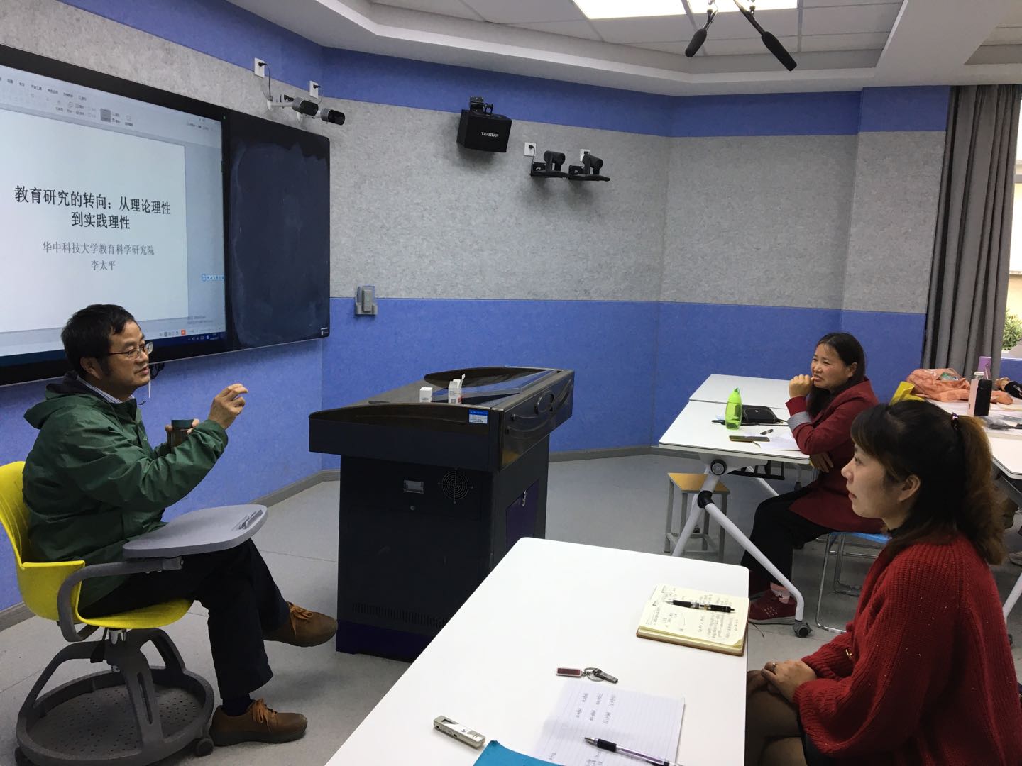 李太平教授,华中科技大学教育科学研究院副院长,博士生导师,中国教育学会德育专业委员会常务理事,湖北省教育学会常务理事。李太平教授从什么是教育研究的实践理性、“实践理性”在教育研究中的表现形式、教育研究实践理性的落实、教育理论与教育实践的转化四个方面强调了教育研究应该开始从理论理性到实践理性的转向。李教授认为实践理性的运行其实在于教育理论与实践的和谐、矛盾、理性的统一。如果说实践是教育的存在方式的话,那么,实践理性就是教育的生存智慧。
