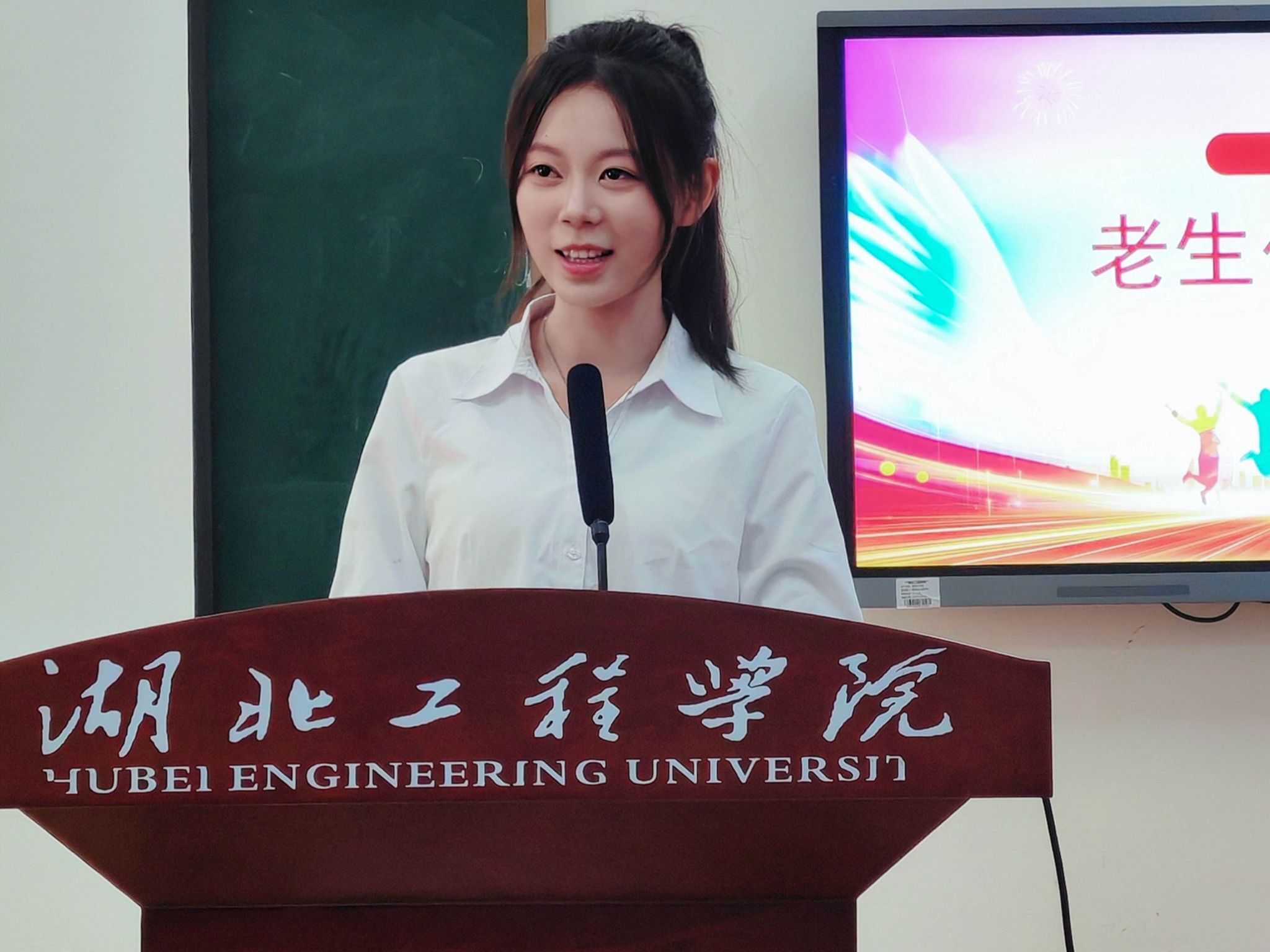 会议第四项,老生代表刘媛同学发言。刘媛同学对于即将开启大学生活的学弟学妹们,她提出几点建议:珍惜时光,保持好奇心与求知欲;勇于尝试,敢于担当,通过实践积累经验;积极参与志愿服务,传递爱心与温暖。最后,她引用了“教育塑造未来,心理点亮人生”来共勉,鼓励大家不畏艰难,勇往直前!