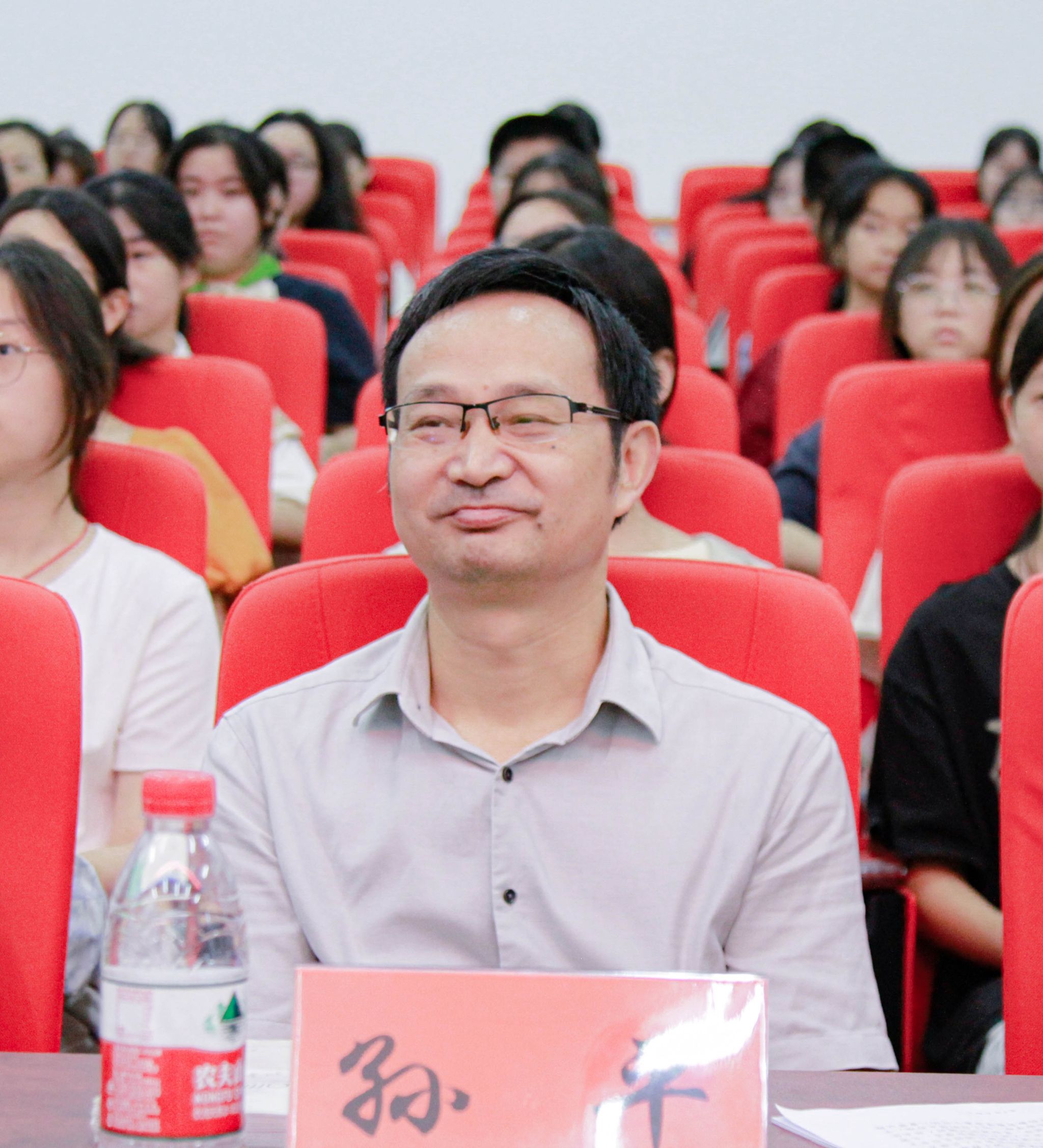 会议第六项,由学院院长孙平教授发表致辞。孙院长首先对2024级新同学的到来表示热烈的欢迎。他强调,中国教育正迈向高质量发展,强调立德树人,培养全面发展人才。他强调,新时代大学生应立大志、明大德、成大才、担大任,珍惜学习时光,勇于挑战,成就未来。