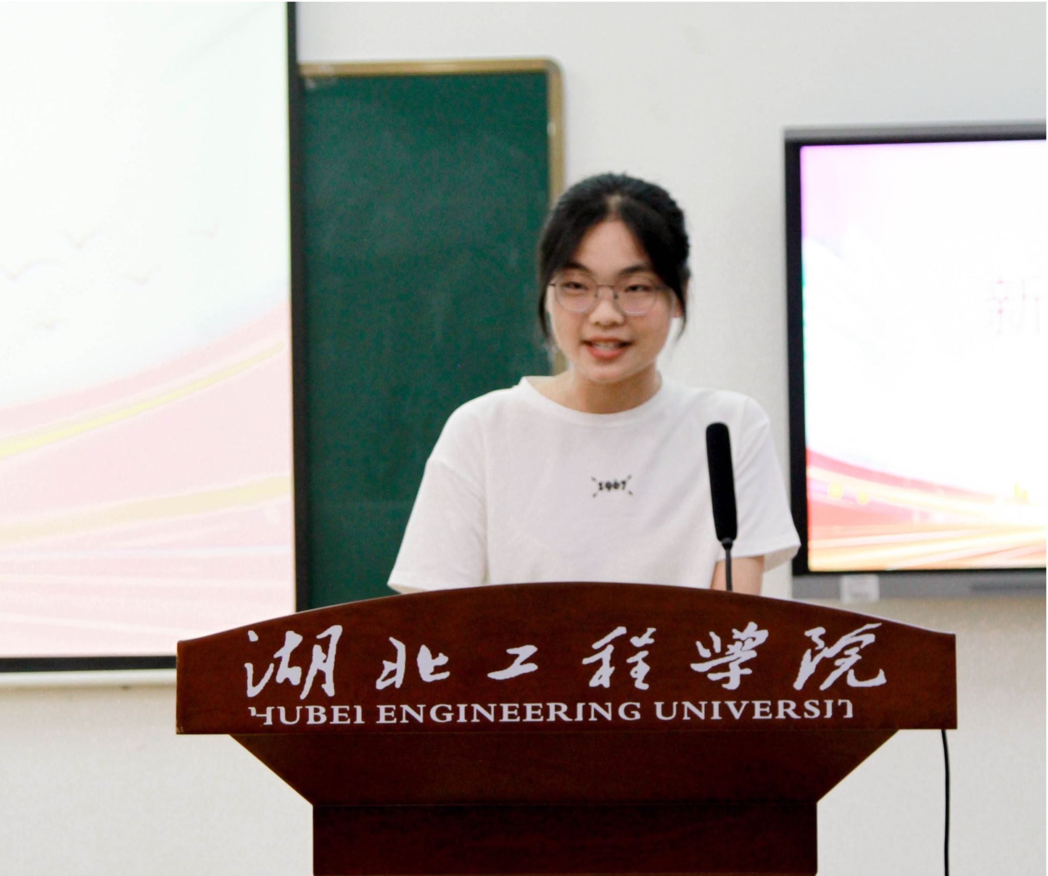 会议第五项,新生代表黄文静发言。黄文静同学提出了三点思考:一是自立,鼓励大家勇敢走出舒适区,面对选择与挑战,用勇气和决心绘制自己独特的人生轨迹;二是生活,倡导选择热爱,拥抱美好,不被外界框架束缚,在体验中寻找自我,享受生活的每一刻;三是学习,强调找到并坚持自己的节奏,不盲目比较,不随波逐流,以坚定的步伐向目标迈进。她在最后表示站在大学的门槛上,我们怀揣梦想,沐浴在阳光下,正如“轻舟已过万重山”,虽经历挑战,但前方无限可能正等待着我们探索。