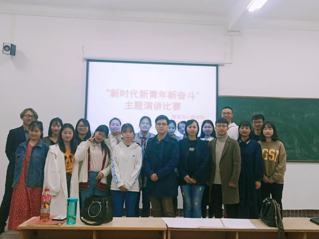 为认真学习贯彻落实习近平总书记关于弘扬爱国奋斗精神的一系列重要指示精神,引导我院学生学思践悟习近平新时代中国特色社会主义思想,进一步树牢“四个意识”,坚定“四个自信”,坚决做到“两个维护”,勇做新时代的奋斗者,我院于2019年4月15日晚19:00在教育楼211举行了以“新时代、新青年、新奋斗”为主题的演讲比赛。分团委书记唐一纯、辅导员袁野、学生会主席谯铃担任此次比赛评委。