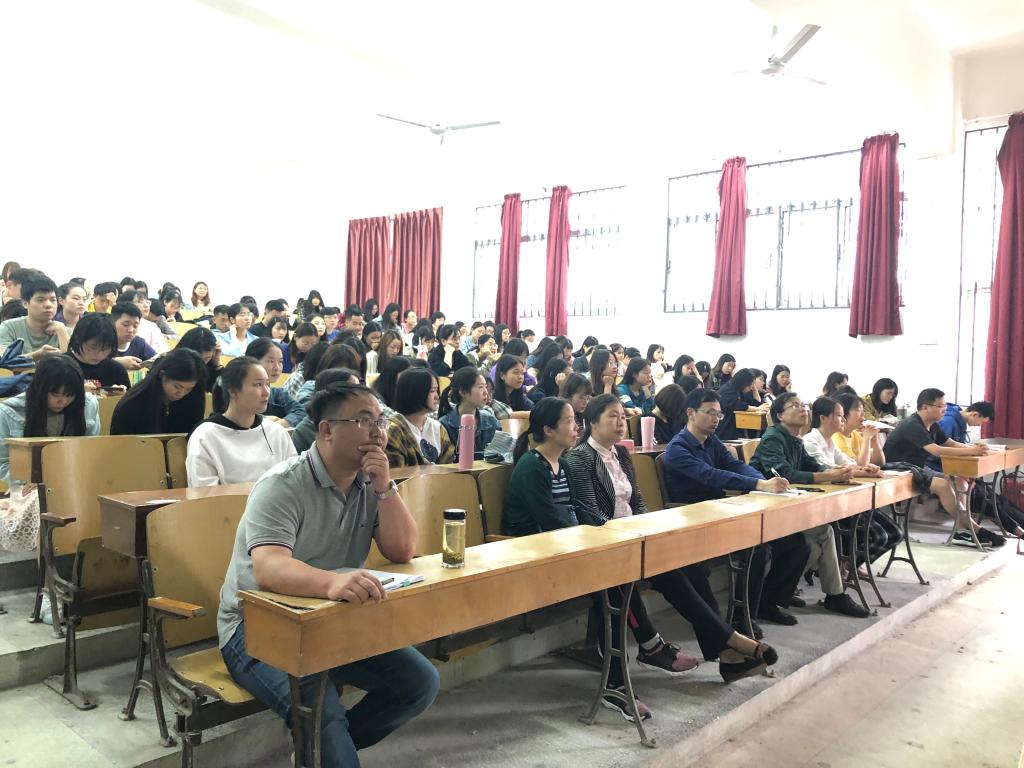 首先肖海平老师给大家做了考研辅导报告,他从为什么要考研?如何选择考研学校?考研的心理准备等多个方面进行的辅导。孙平老师说:考研学生必须做到“四心”,下定决心、坚定信心、保持恒心、赢在初心。