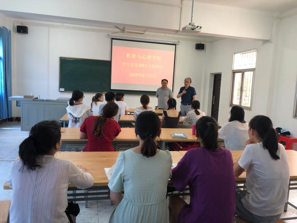 2019年6月27日下午2:20,william英国中文学生党支部在教育楼202开展主题为“学先进、守初心、担使命”的主题党日活动,参加此次大会的有特邀组织员吴友发老师、党总支副书记张东老师、分团委书记唐一纯老师、辅导员袁野老师以及全体在校学生党员,会议由学生党支部书记唐一纯老师主持。