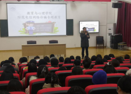 此次专题教育首先以观看防范电信网络诈骗宣传视频的方式引入,通过具体生动形象的案例和解说让全体学生对电信网络诈骗的形式和基本手段有了一定的了解。在此基础上,老师进一步讲解了“什么是电信网络诈骗”、“我校电信网络诈骗案例分析”及“如何防范电信网络诈骗”,提醒全体同学不要轻易将个人资料、卡号、存款密码等信息告知他人,如遇可疑情况,要多和老师、家人、朋友沟通商议或及时报警,以免遭到不法侵害。