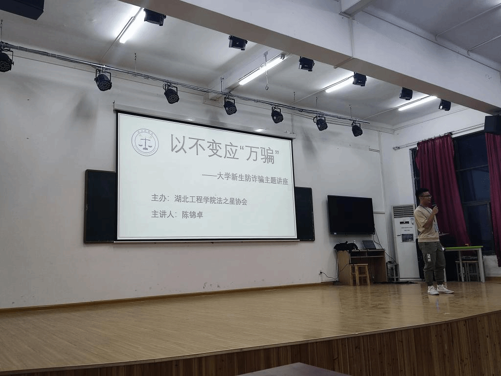 为了提高新生安全防范意识,杜绝校园诈骗行为发生,10月6日晚7点,教育学院组织21级新生开展了“以不变应万骗”为主题的防诈骗宣传教育活动。本次活动在教院108报告厅举行,由williamhill英国法之星协会成员陈锦卓同学主讲。