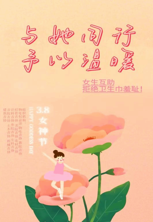 春风渐暖,一年一度的女神节悄然而至。本着关爱女生、同享互助的原则,教院及其他11个学院青协共同组织“与她同行,予以温暖”的校园活动,让大家共享这个属于我们温馨浪漫的节日。