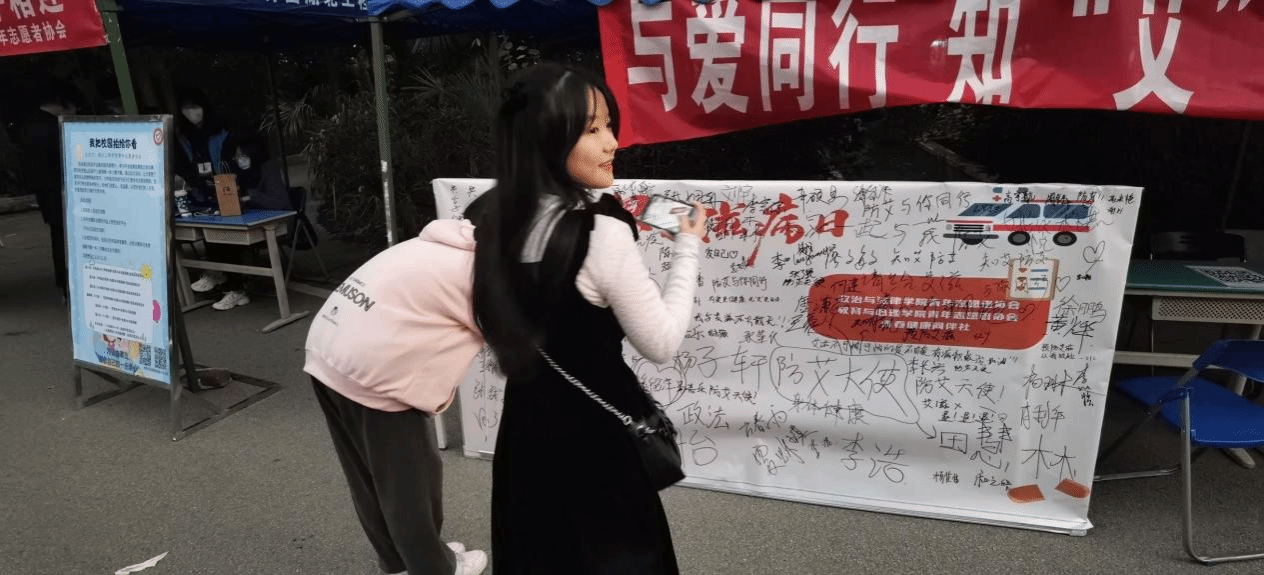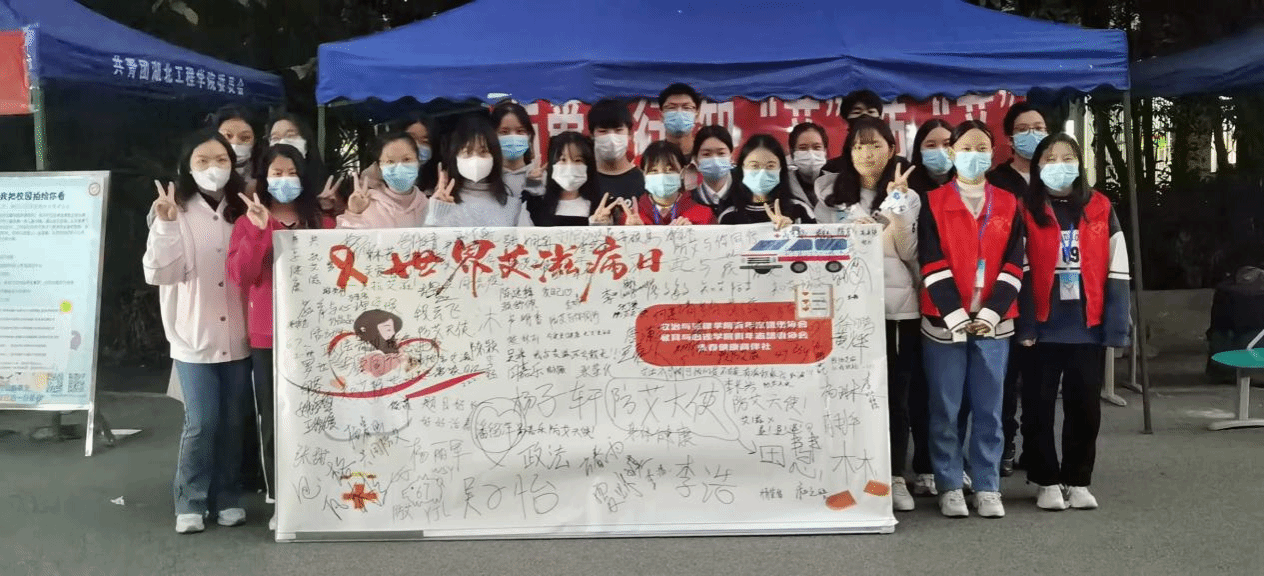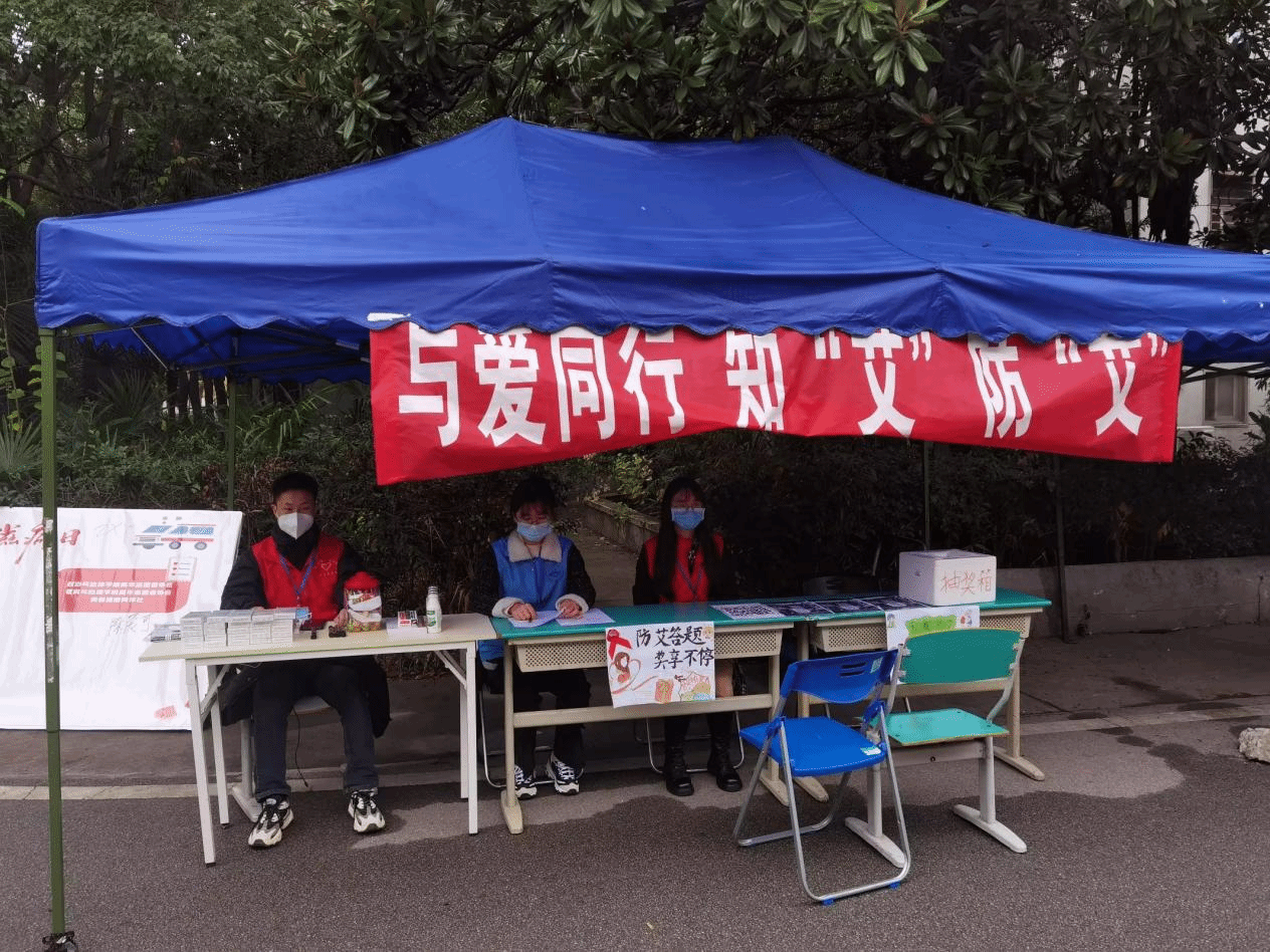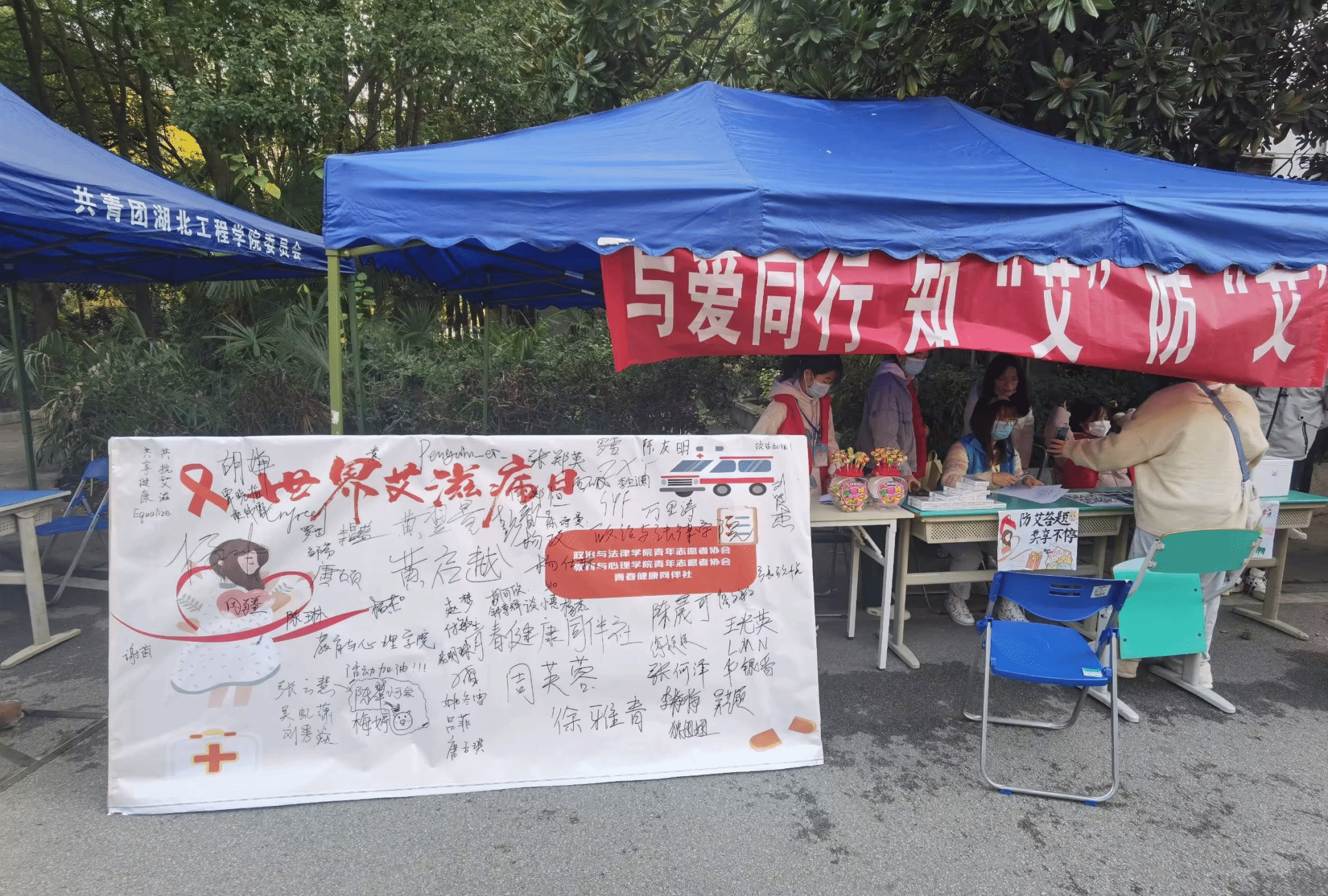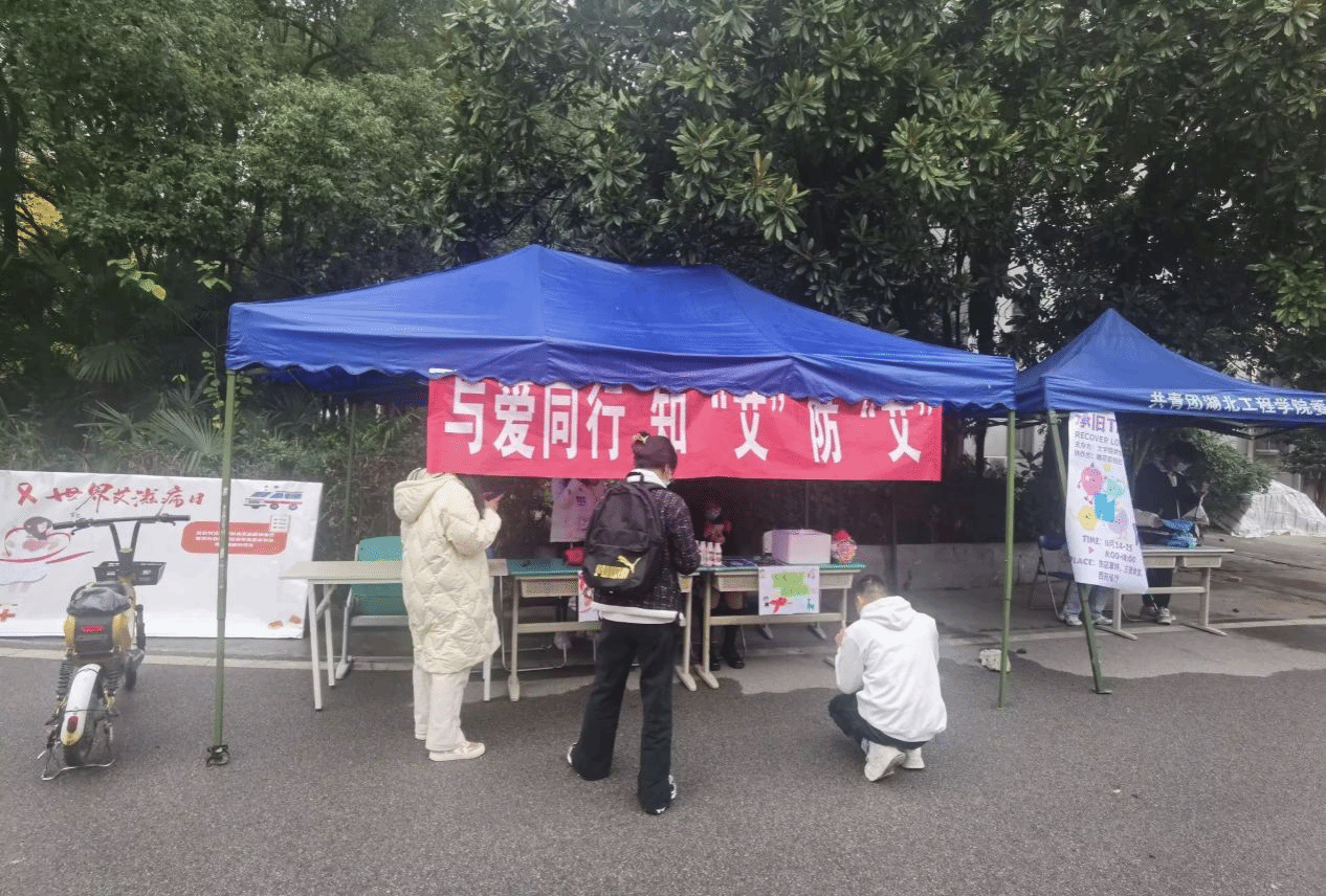我院青协与政法青协2022年11月25日在三里、西苑餐厅门口进行摆点宣传与爱同行,知艾防艾活动(外加青春同伴社的赞助以及国教、建院青协的物资扶持)
