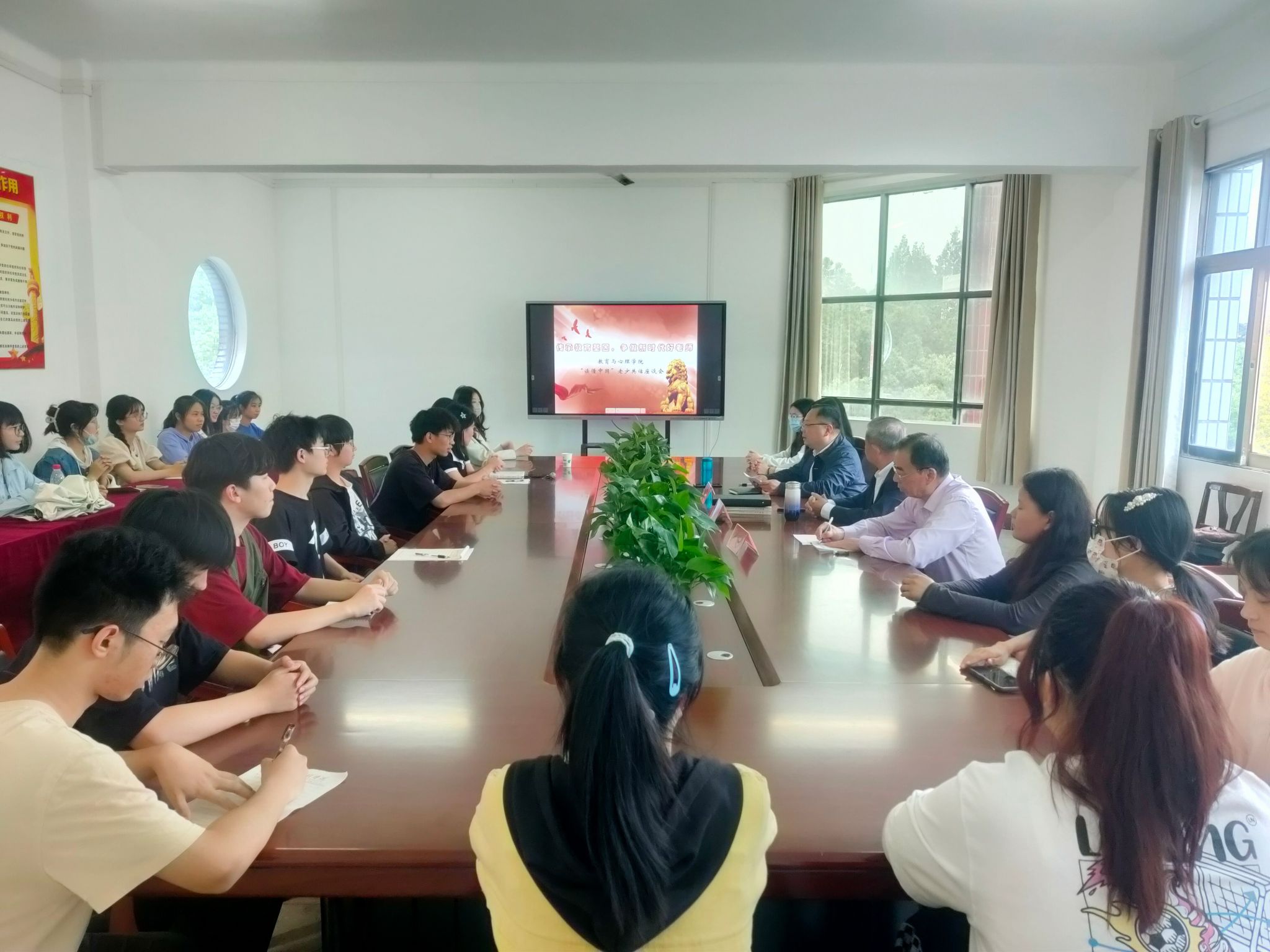 为贯彻落实教育部关工委关于开展2023年“读懂中国”活动,深入挖掘和学习“五老”精神的深刻内涵,5月25日下午,我院于教育楼403会议室开展“传承教育基因,争做新时代好老师”读懂中国老少共话座谈会。座谈会特邀学校原副校长陈丁堂教授、学校关工委秘书长邓绍伟老师出席,我院部分学生干部、各班级学生代表参加座谈会。座谈会由我院党委书记张振林主持。