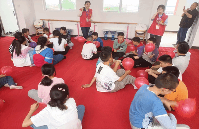 在活动中,志愿者通过游戏的方式,教会小朋友们如何正确释放压力以及正确看待生活中的压力,从团体活动中,教会他们懂得团体成员的重要性