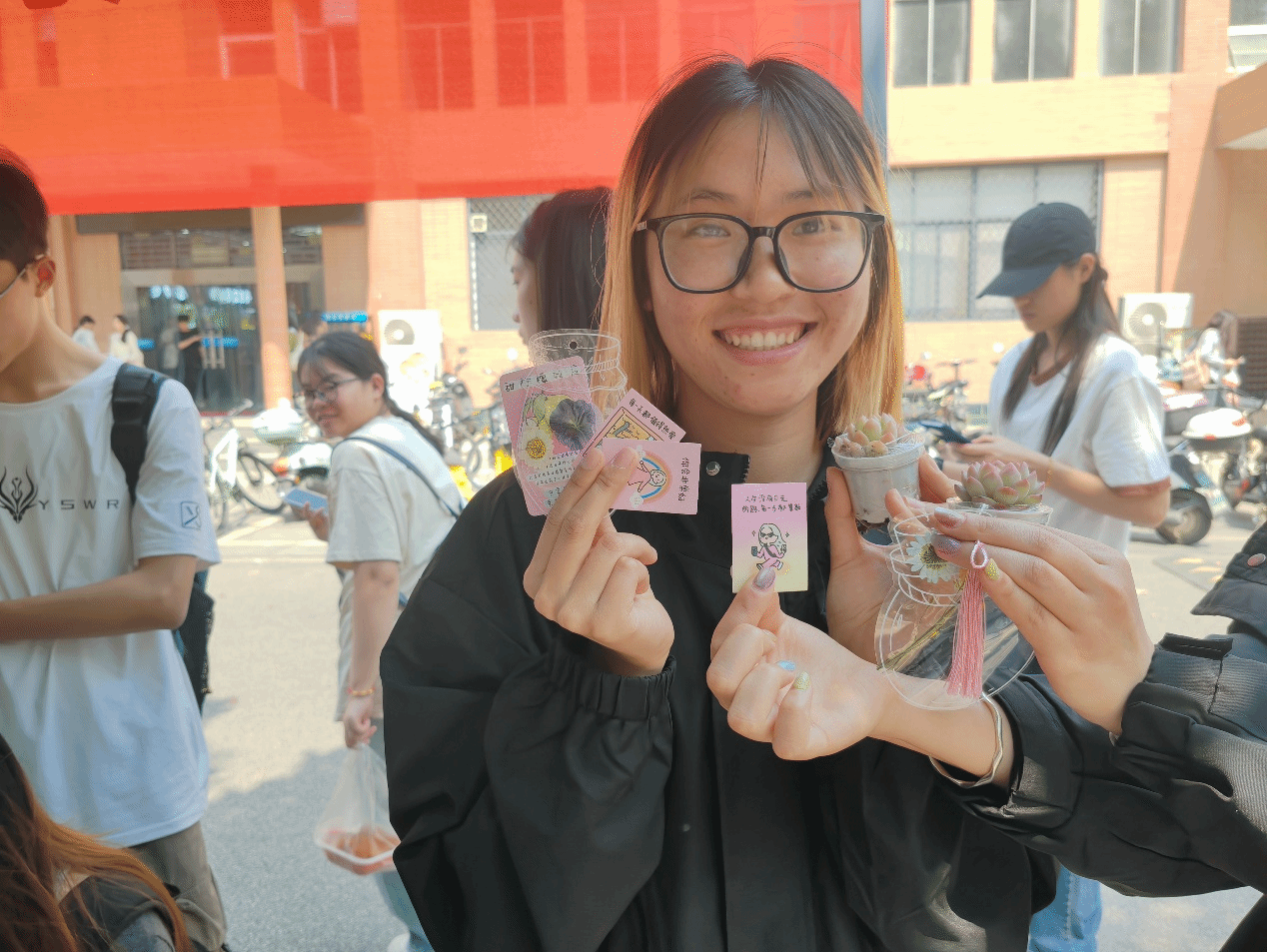 活动以“扫码答题”为核心科普环节,题目涵盖情绪管理、压力应对等贴近学生生活的主题。参与者通过手机扫码进入题库,答题后可即时查看解析,并领取多肉植物作为奖励。“题目设计很接地气,比如‘如何快速平复紧张情绪’‘识别朋友情绪低落的信号’,解析里还附带了简单易行的方法,特别实用!”文学院陈同学分享道。现场同步发放的“心理效应小卡”以漫画形式解析“标签效应”“蝴蝶效应”等理论,配合志愿者自制的《情绪急救手册》宣传单,成为学生争相收藏的“口袋宝典”。