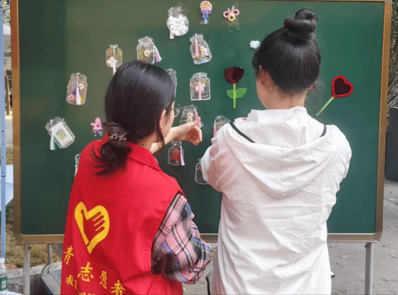 参与者挑选干花素材设计专属书签:雏菊搭配“向阳而生”字样,寓意积极乐观 ;三色堇与简约线条组合,象征生活的多彩与复杂 ;翠雀花错落排列,展现出灵动美,隐喻对自由心境的追求 。志愿者介绍:“制作过程需要专注力,裁剪、粘贴的每一步都能让人进入‘心流’状态。” “每片花瓣的位置调整都像在梳理情绪,完成时特别有成就感!”文学院郭同学展示作品时笑着说道。