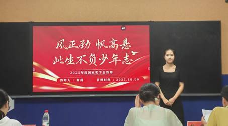 答辩会伊始,于飞飞书记发表致辞。她指出,国家奖学金不仅是对学生学业成绩和综合能力的认可,更是激励全院学子追求卓越、勇攀高峰的重要载体。于书记鼓励候选人珍惜机会、从容展示。