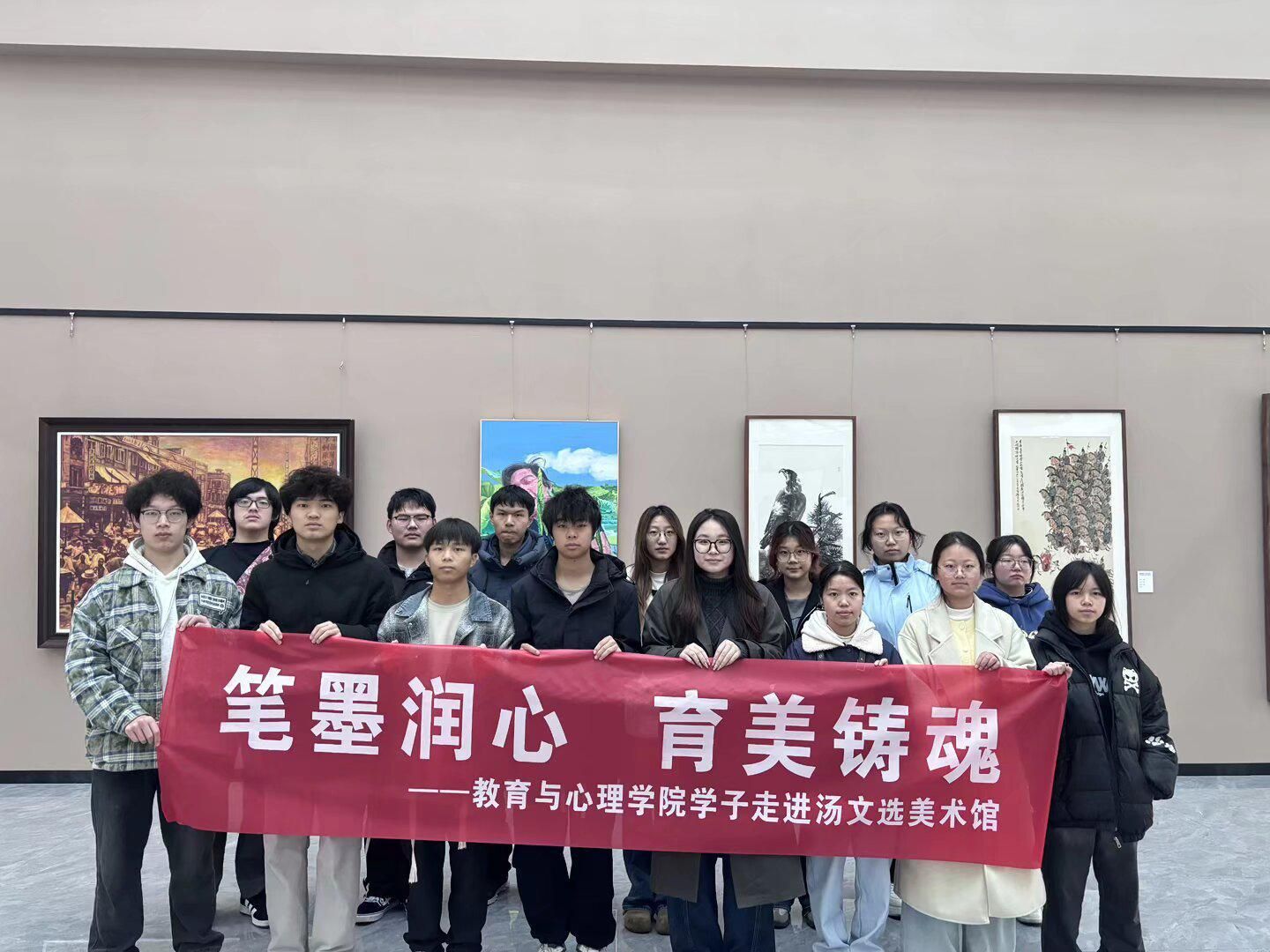 活动尾声,学生们在美术馆大厅合影留念。美育是心灵的滋养,此次走进美术馆,让同学们在经典作品中感受美、理解美、创造美,是‘第二课堂’的重要实践。下一步,我院将持续推进“润心育心”系列美育实践活动,丰富形式与内涵,推动美育与心理健康教育深度融合,以美润心、以美育人,助力青年学生全面健康成长。