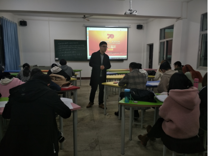 为进一步落实“不忘初心,牢记使命”主题教育,深入学习贯彻党的十九届四中全会精神,积极引导大家坚定不移跟党走,努力提高思想建设。我院于2019年11月24日组织各班级利用周日晚点评开展“学习十九届四中全会精神”主题班会。