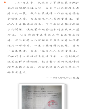 在此次疫情防控期间,我院许多学生积极投身于抗疫志愿活动之中,为打赢这场防疫阻击战贡献自己的青春力量,彰显了当代大学生的责任与担当。在此次活动中,我们也收集到了我院许多抗疫志愿者的小故事。