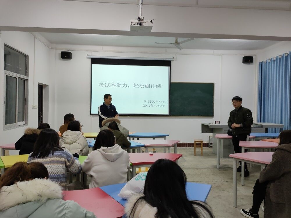 期末考试即将来临,为缓解学生考前紧张、焦虑的情绪,引导学生正确看待考试,诚信应考,促进我院优良学风建设,我院于2019年12月1日组织各班利用晚点评开展了以“考试齐助力,轻松创佳绩”为主题的学风建设活动。