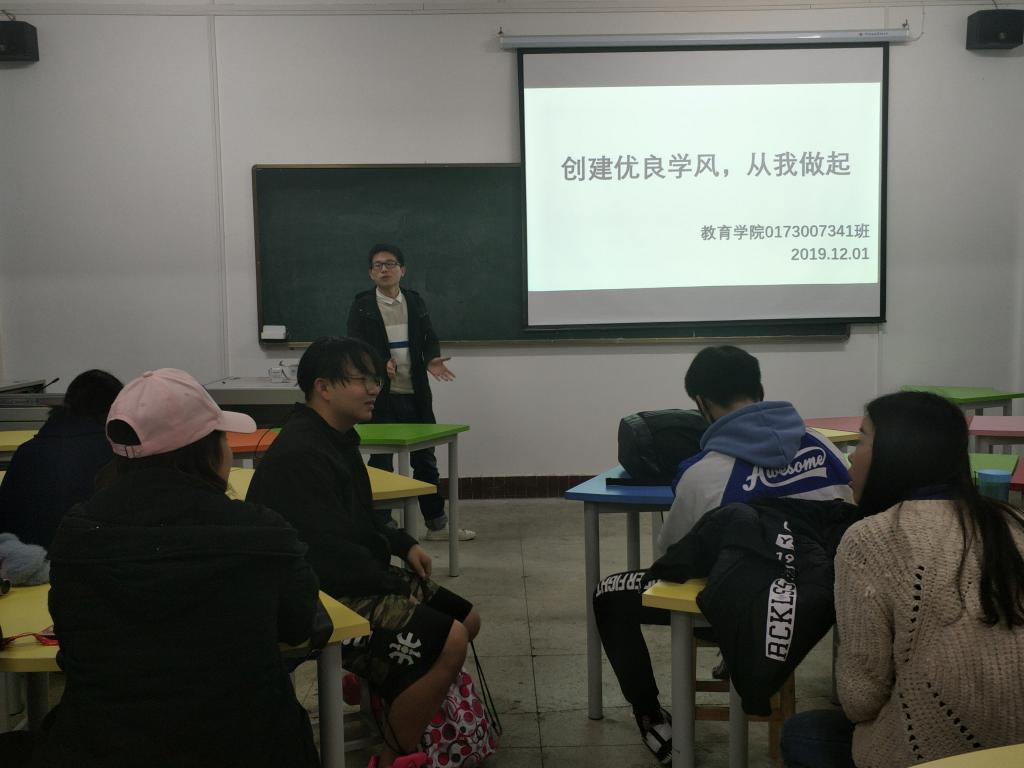 为创建良好的育人环境,促进优良学风的形成,更好地调动全院学生的积极性,引导学生刻苦学习,我院于2019年12月1日组织各班级在教育楼开展“优良学风班”主题班会活动。