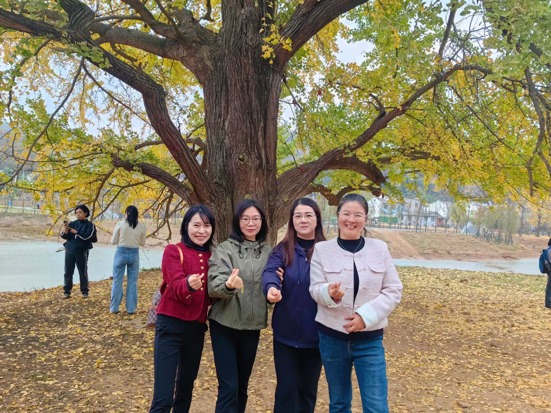 千年银杏谷文化,五老树的震撼,岁月的年轮,经受时间的考验。自然以其神奇的魅力向我们展示它的美好,大家在赏心悦目的银杏树下,放松心情,交流工作、生活中的事情,愉悦身心的同时又增强了同事之间的情谊。凝心聚力一股绳,通过秋游活动,大家的心更靠近,快乐的笑声一路飘荡。