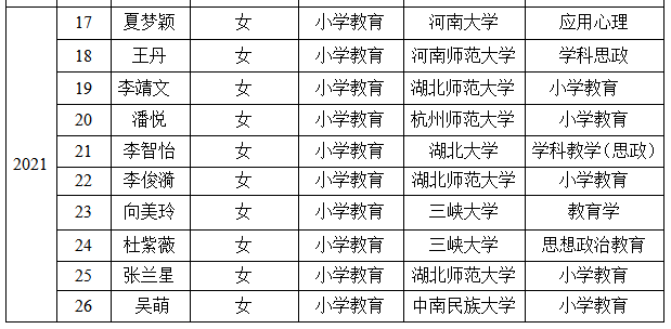 2、专业优势:小学教育专业为湖北省省级一流本科专业。《礼仪与成功》专业课程为省级一流本科课程。《当代教育学》团队是湖北省高校优秀教学团队。小学教育学专业重在中小学课程与教学论的教学与研究。